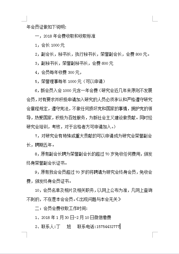 6,新会员入会1000元含一年会费(研究会近几年来原则不发展会员,对有要求并积极申请加入研究的人员必须承认和严格遵守研究会章程规定,遵守宪法,不做任何损坏党和国家的事情,拥护党的领导,热爱国家,积极为百姓服务,为新社会主义建设做贡献。同时经研究会培训,考核,对于合格者方可申请加入。)