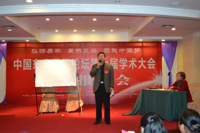 17号全天报到来自东北三省的易学爱好者纷纷前来参加会议,17晚由论坛主席王炳中,副主席侯永良、尹昌日、田野,秘书长江山,主持召开了主席团会议,对这次大会的召开及日程进行了系统的安排.18日开幕式由吉林市易学文化研究会副会长高绍盛主持,市政协副主席赵友三宣布大会开幕,市社会科学院院长王胜利做了热情洋溢的讲话,对我市的历史及发展现状做了简要的阐述,对来自全国各地的专家表示欢迎。江山会长对大会的筹备工作进行了简要汇报同时对专家的到来表示欢迎。他说当今中国,“科学发展”、“社会和谐”已经成为时代发展的主流。现在大家有一个共识,当前的建设离不开祖先的智慧,构建和谐社会应该与发扬优秀传统同步前行。《周易》是中华民族数千年智慧的结晶,是中华文明的精华与源头,是经典中的经典,哲学中的哲学。其内涵丰富,涵盖政治、经济、军事、文化、社会等方方面面;其思想精深,举凡天地人相辅相成之基本原理均有涉及。对于和谐思想,《易经》《易传》和易学中也有极其丰富而深刻的阐述。《周易》将“太和”看作天地人的最高境界,将履行规范看作求得和谐的重要原则,将亲善友爱看作达到和谐的道德前提,将谋利百姓看作和谐的经济基础,如此等等,不一而足。我们今天应该继承这些智慧,发扬这些智慧,用它来处理各种关系,解决各种矛盾,求得社会和谐,经济发展,人民幸福,国家富强。周易与和谐的结合,预示着传统文化将迎来一个新的热潮,易学文化将进入一个更为世人接受、更加造福世人的崭新阶段。迎接这个热潮,掀起这个热潮,有待于易学界各位同仁携手耕耘,开拓创新。我们将本着历史传统与现实需要相结合,传统文化中的思想精髓与现代先进的管理理念相结合,学术研究与实际工作相结合,科学发展与社会和谐相结合的精神,把我们的学术研究推向一个更新的阶段。论坛副主席尹昌日做了东北易学论坛2014年度的工作总结,对论坛的建立和论坛的发展及论坛将来的发展进行了详细的阐述。论坛期间东三省易学会长史娟、萧光复、夏继伟、刘显章、师仰廷、薛富艺、赵得任、刘志臣、李虹葑、王成桓等主席团成员共同主持了学术论坛。