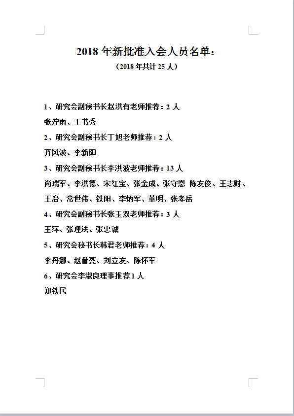2018年新批准入会人员名单:
