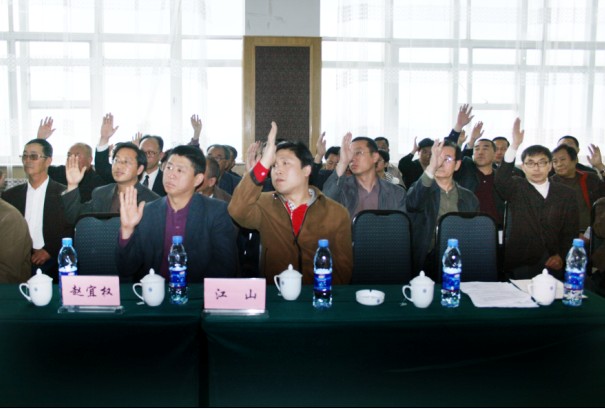 吉林市易学文化研究会筹备组成员高绍盛先生主持、首先,由吉林市政协副主席赵友三先生致开幕词。吉林市民政局社团管理处吴宝修处长宣读了成立吉林市易学文化研究会的批复、随后,吉林市人大副秘书长唐聿文先生讲话,对吉林市易学文化研究会的成立表示祝贺,并对研究会的未来发展方向作了重要指示。接下来,吉林市易学文化研究会筹备组负责人江山做了筹备工作汇报,对研究会筹备组从2007年11月筹办至今所做的工作及2006国际易学论坛大会、中华易学文化大会的参会及获奖情况作了简要汇报。吉林市易学文化研究会筹备组成员蔡景阳先生就《吉林市易学文化研究会章程(草案)》进行了说明,全体会员鼓掌通过。吉林市易学文化研究会筹备组成员韩军先生宣读理事会名单,全体会员一致通过《关于研究会领导成员分工的决定》,并由于海民在全体大会上宣布,决议如下: